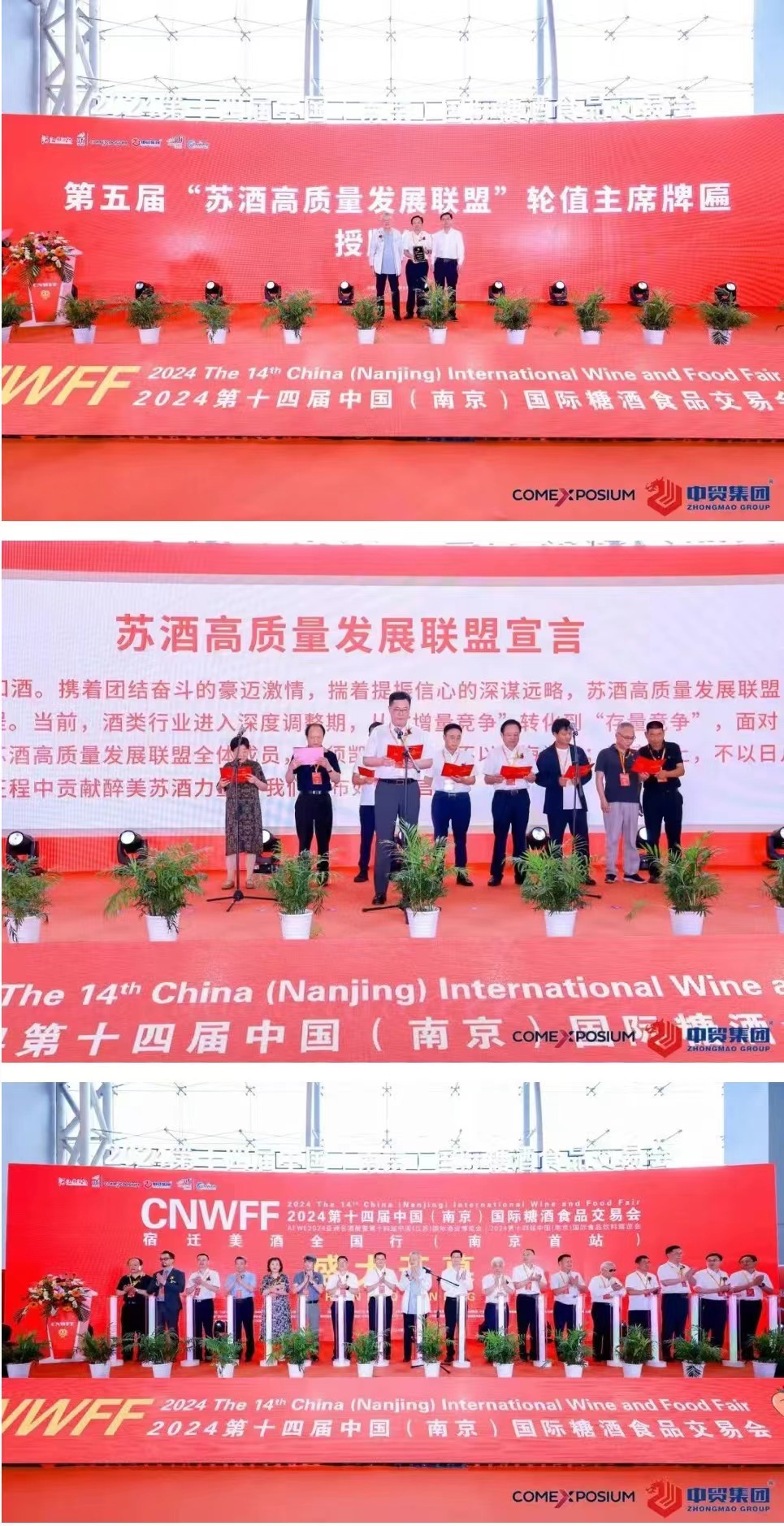 第十四屆南京糖酒會(huì),由中國酒業(yè)協(xié)會(huì)、中國酒類流通協(xié)會(huì)、江蘇省工業(yè)和信息化廳、江蘇省商務(wù)廳、江蘇省工商業(yè)聯(lián)合會(huì)指導(dǎo),江蘇省財(cái)貿(mào)輕紡工會(huì)、南京市商務(wù)局支持,江蘇省酒類行業(yè)協(xié)會(huì)、法國高美艾博展覽集團(tuán)、中貿(mào)科技集團(tuán)、中法合資高博中貿(mào)國際會(huì)展集團(tuán)主辦,中法合資高博中貿(mào)國際會(huì)展(山東)有限公司承辦,宿遷市酒產(chǎn)業(yè)發(fā)展促進(jìn)中心戰(zhàn)略合作。