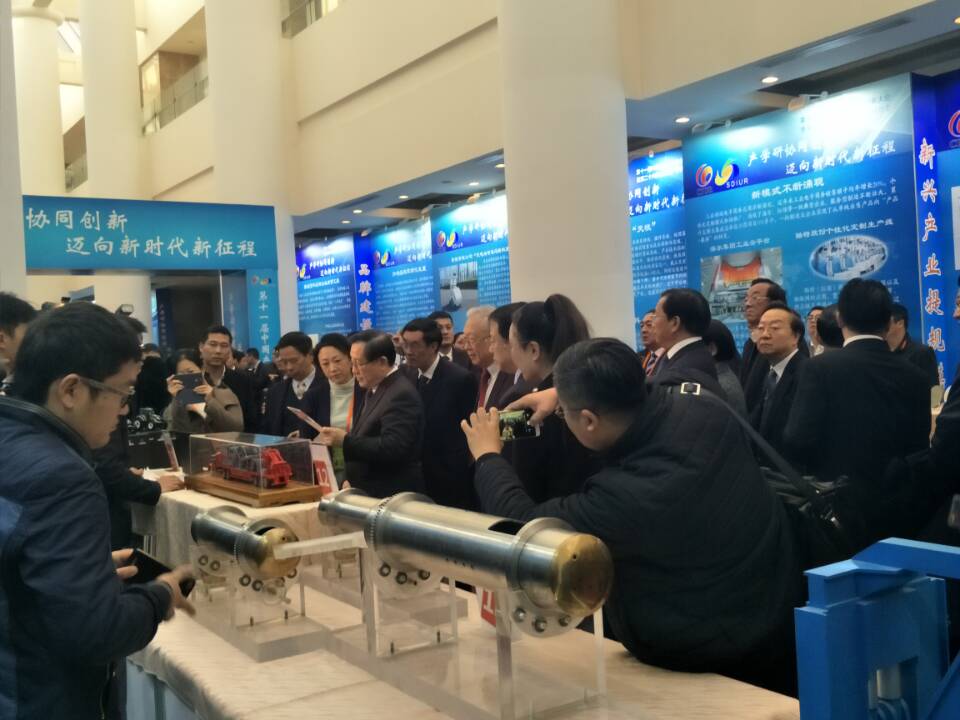 與會(huì)代表還參觀了山東省產(chǎn)學(xué)研展洽會(huì)。山東省委省政府高度重視產(chǎn)學(xué)研合作創(chuàng)新,從1991年開始連續(xù)25年舉辦產(chǎn)學(xué)研展洽會(huì),有計(jì)劃、有步驟地組織開展各類產(chǎn)學(xué)研活動(dòng)。在各級(jí)黨委政府的有力推動(dòng)下,我省產(chǎn)學(xué)研協(xié)同創(chuàng)新不斷向縱深層次推進(jìn),合作模式日趨深化,已成為我省企業(yè)技術(shù)創(chuàng)新的理念和品牌。截至目前,省政府已與24家國內(nèi)外知名高校、科研院所就產(chǎn)學(xué)研合作簽訂了戰(zhàn)略合作協(xié)議,建成各類新型研發(fā)機(jī)構(gòu)109家,從事技術(shù)研發(fā)和轉(zhuǎn)化的人員6000余人;省級(jí)以上企業(yè)技術(shù)中心均與高??蒲性核⒘朔€(wěn)定的產(chǎn)學(xué)研合作關(guān)系,通過產(chǎn)學(xué)研合作完成的企業(yè)技術(shù)項(xiàng)目占比已達(dá)95%以上,產(chǎn)學(xué)研合作在推動(dòng)工業(yè)新舊動(dòng)能轉(zhuǎn)換上發(fā)揮了重要作用。展洽會(huì)突出新舊動(dòng)能轉(zhuǎn)換,以“新技術(shù)、新業(yè)態(tài)、新模式、新產(chǎn)業(yè)”促“智慧產(chǎn)業(yè)化、產(chǎn)業(yè)智慧化、跨界融合化、品牌高端化”實(shí)現(xiàn)“傳統(tǒng)產(chǎn)業(yè)提質(zhì)效、新興產(chǎn)業(yè)提規(guī)模、跨界融合提潛能、品牌高端提價(jià)值”為主線,匯聚了威高妙手“s”微創(chuàng)手術(shù)機(jī)器人、海信計(jì)算機(jī)輔助手術(shù)系統(tǒng)、浪潮天梭M13、中集來福士藍(lán)鯨一號(hào)海洋鉆井平臺(tái)、盛瑞傳動(dòng)混合動(dòng)力八擋自動(dòng)變速器、卡薩帝雙子云裳洗衣機(jī)等一大批我省企業(yè)通過產(chǎn)學(xué)研合作取得的,引領(lǐng)全省工業(yè)發(fā)展的重大創(chuàng)新項(xiàng)目,展示了近年來山東省產(chǎn)學(xué)研合作取得的豐碩成果。展洽會(huì)發(fā)布了省內(nèi)外近50家重點(diǎn)高校、科研院所最新科技成果1600余項(xiàng),省內(nèi)近400家企業(yè)技術(shù)難題、人才需求500余項(xiàng),為企業(yè)與知名專家、學(xué)者及研發(fā)機(jī)構(gòu)搭建了直接交流平臺(tái),達(dá)成了一大批重要合作意向。