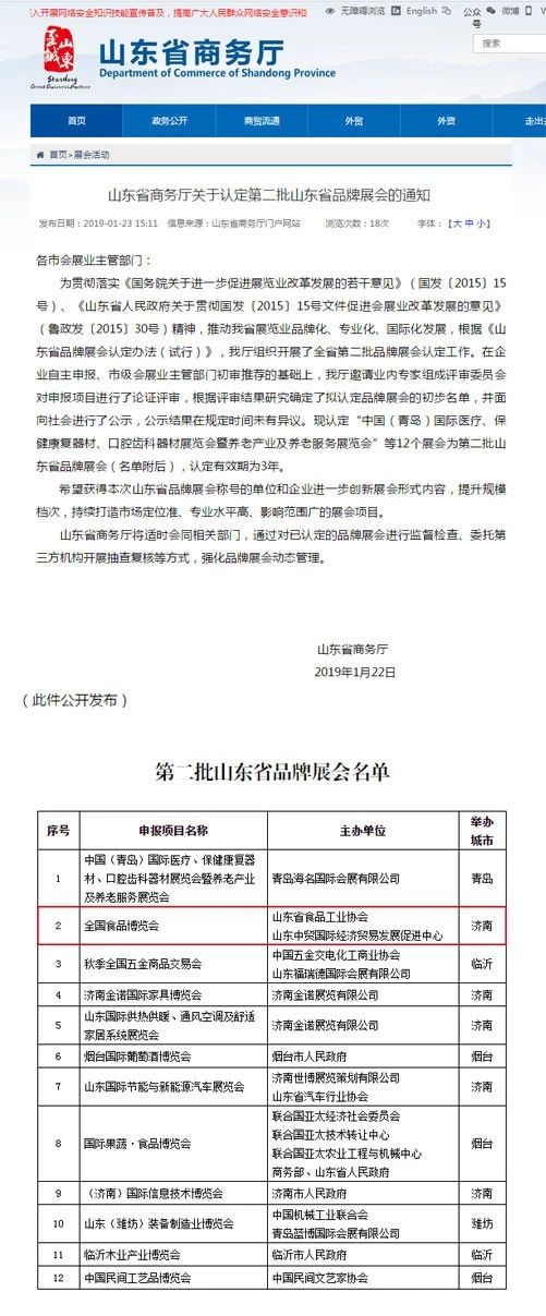 全國(guó)食品博覽會(huì)榮獲山東省品牌展會(huì)的殊榮,不僅是省商務(wù)廳對(duì)展會(huì)走向品牌化權(quán)威肯定,也是對(duì)近年來(lái)全國(guó)食品博覽會(huì)在會(huì)展產(chǎn)業(yè)