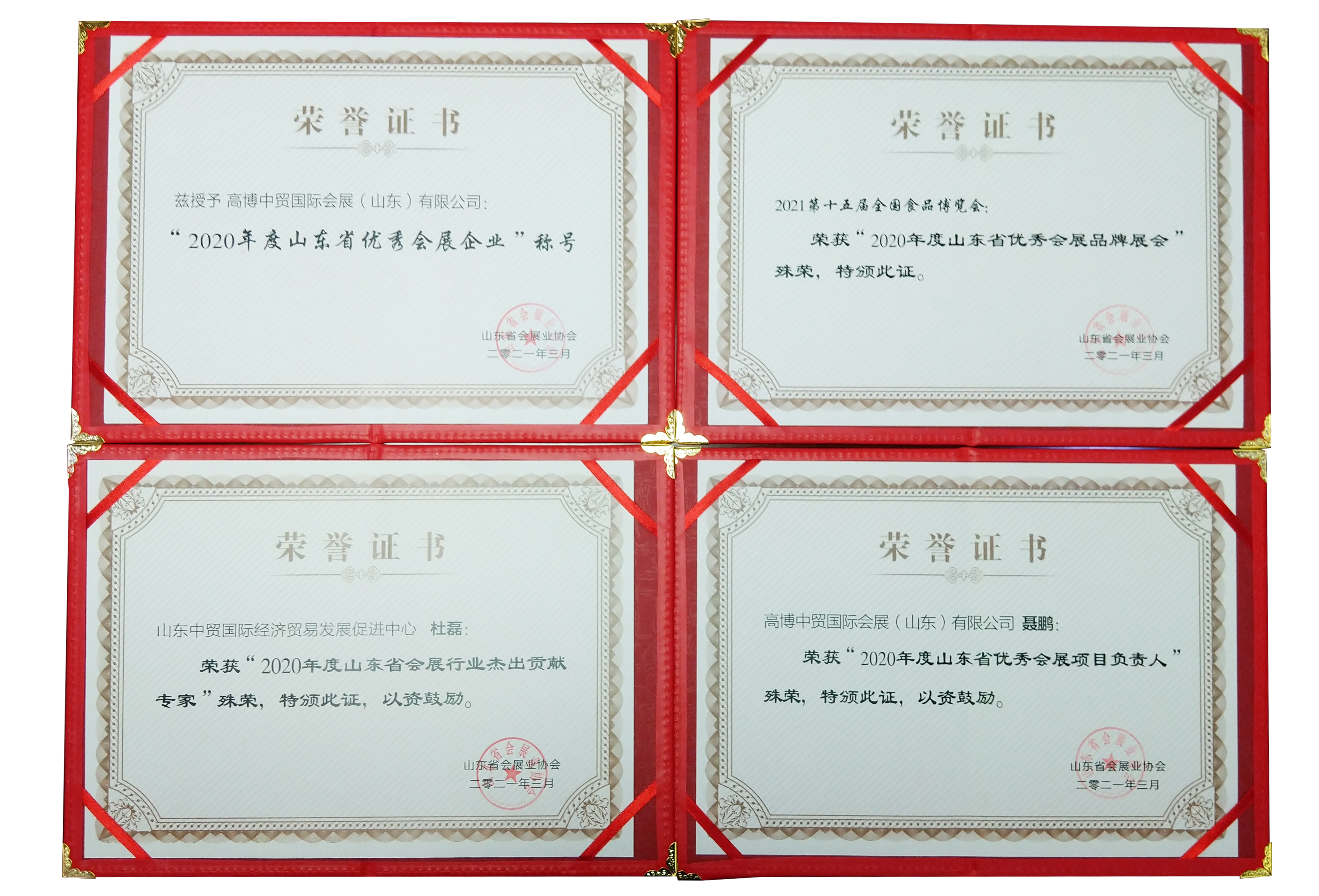 近日,中貿(mào)集團(tuán)榮獲山東省會(huì)展業(yè)協(xié)會(huì)2020年度多項(xiàng)殊榮。其中,高博中貿(mào)國(guó)際會(huì)展(山東)有限公司被評(píng)為“‘2020年度山東省優(yōu)秀會(huì)展企業(yè)’稱號(hào)”;2021第十五屆全國(guó)食品博覽會(huì)榮獲“‘2020年度山東省優(yōu)秀會(huì)展品牌展會(huì)’殊榮”,山東中貿(mào)國(guó)際經(jīng)濟(jì)貿(mào)易發(fā)展促進(jìn)中心主任杜磊榮獲“‘2020年度山東省會(huì)展行業(yè)杰出貢獻(xiàn)專家’殊榮”、高博中貿(mào)國(guó)際會(huì)展(山東)有限公司副總經(jīng)理聶鵬榮獲“‘2020年度山東省優(yōu)秀會(huì)展項(xiàng)目負(fù)責(zé)人’殊榮”。